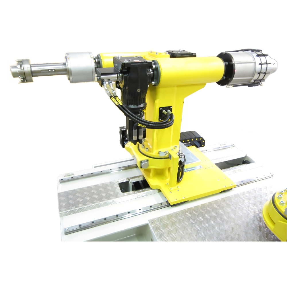 - Double turntable shafts. One shaft with two expandable hubs suitable for rims 13” to 22.5” or one shaft with an expandable hub and the other with bead plates.